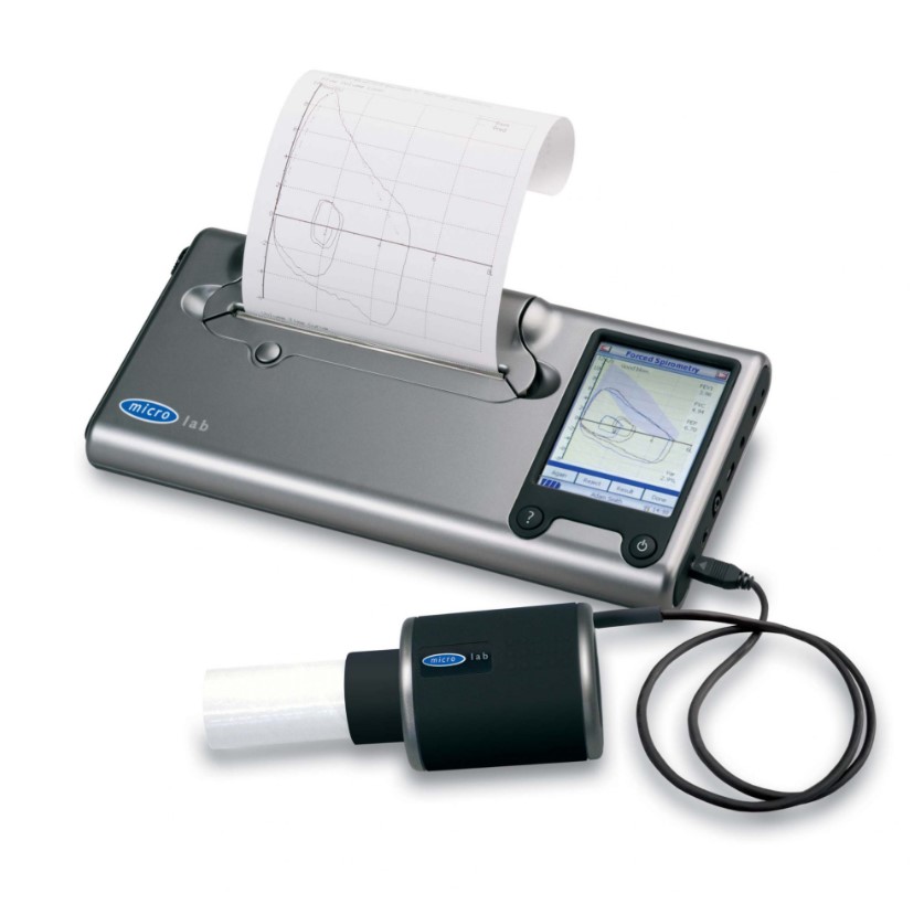 Spirometr MICROLAB MK8: dotykowy ekran, polskie menu, baza 2000 pacjentów, 41 parametrów, złota głowica, wbudowana drukarka, współpraca z PC. Idealny do diagnostyki układu oddechowego.