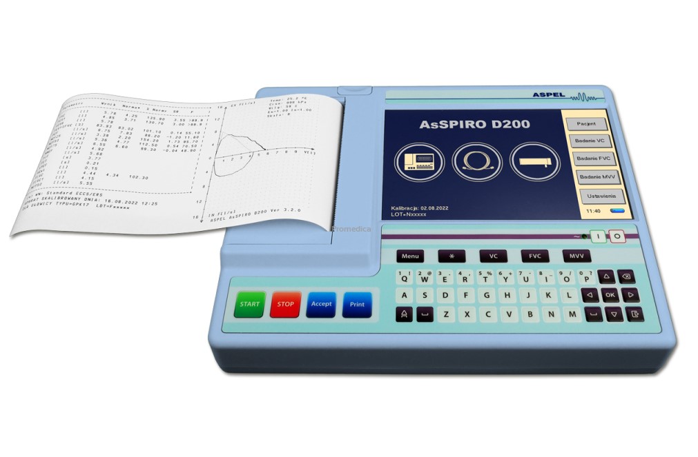 Spirometr ASPEL SPM SPIRO v.303: przenośny, dla dorosłych i dzieci, z głowicą pneumotachometryczną, strzykawką kalibracyjną i innymi akcesoriami. Idealny do diagnostyki układu oddechowego.